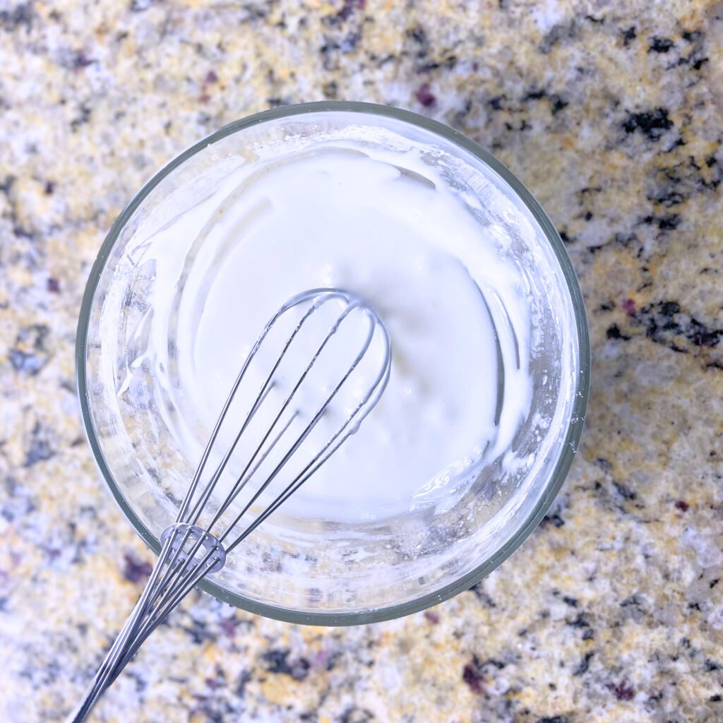5. In a separate bowl, whisk heavy cream, egg, and vanilla extract.