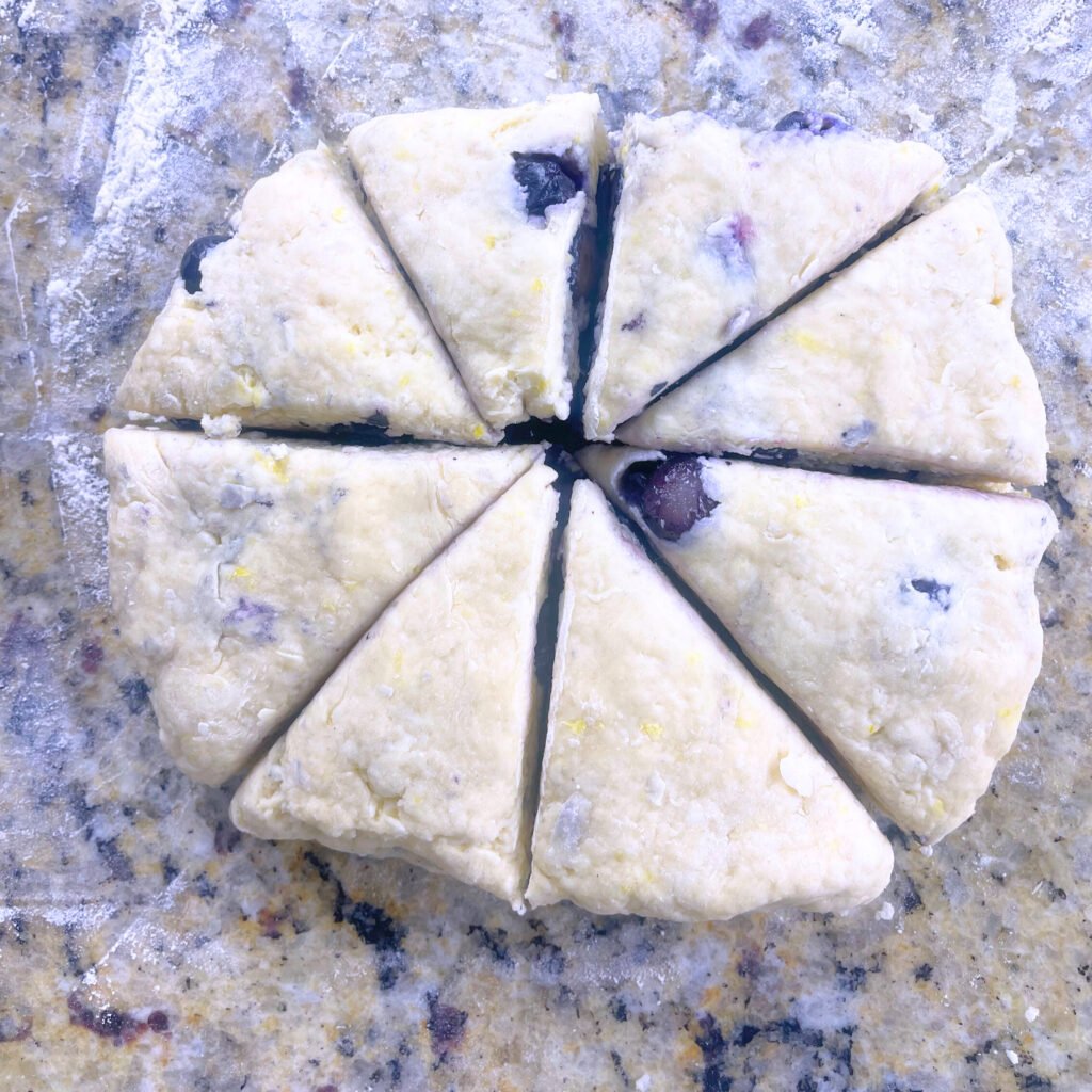 8. Shape dough into a 1-inch thick circle and cut into 8 wedges.