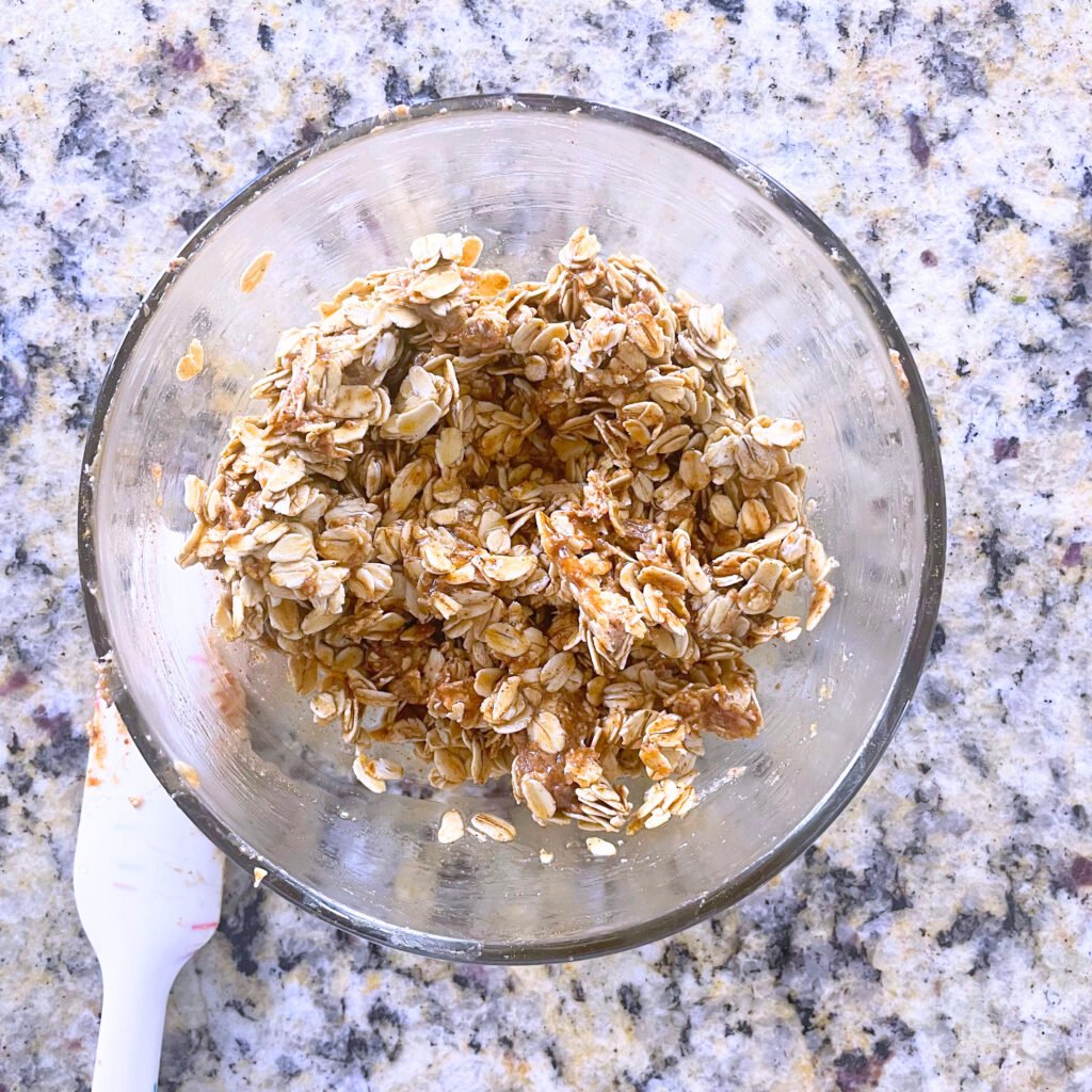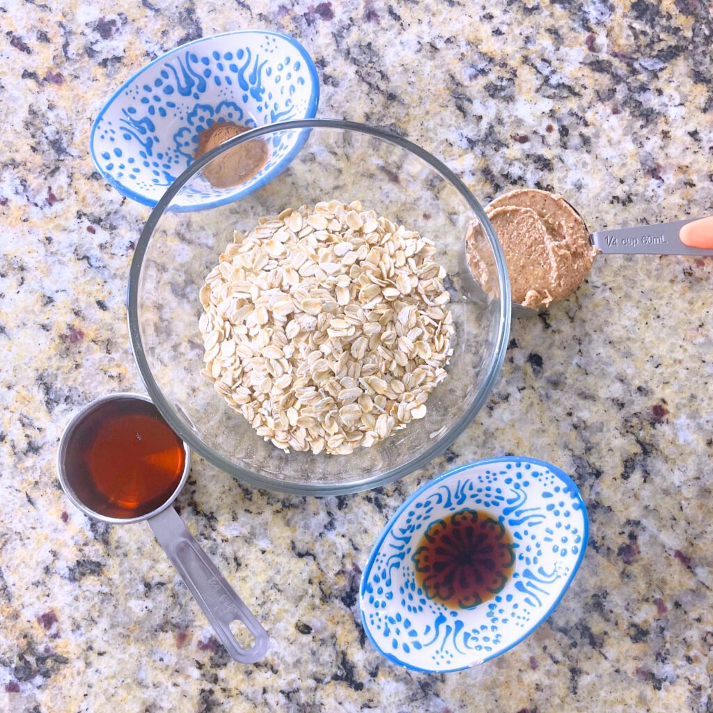 - In a bowl, mix oats, cinnamon, almond butter, maple syrup, and vanilla extract.