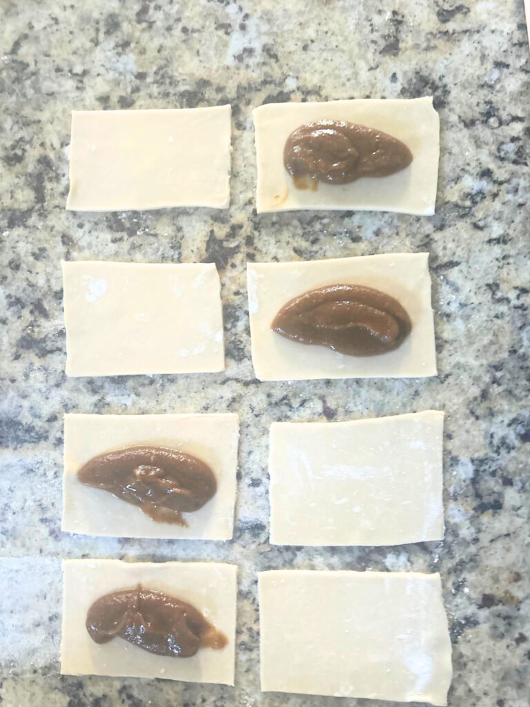 3. **Assemble the Poptarts:** Place half of the rectangles on a baking sheet lined with parchment paper. Spoon about one tablespoon of the pumpkin filling onto the center of each rectangle, leaving a perimeter of approximately half an inch. Take the remaining dough rectangles and place them on top of the filled ones. Press the edges together firmly to seal them, then use a fork to crimp along the edges. This will not only help secure the filling but also give your poptarts a classic look.