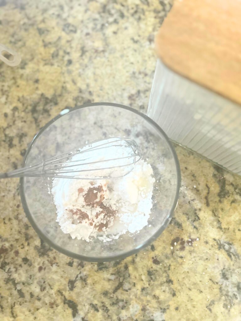 18. In a small bowl, whisk together confectioners’ sugar, vanilla extract, cinnamon, and heavy cream/milk until smooth.