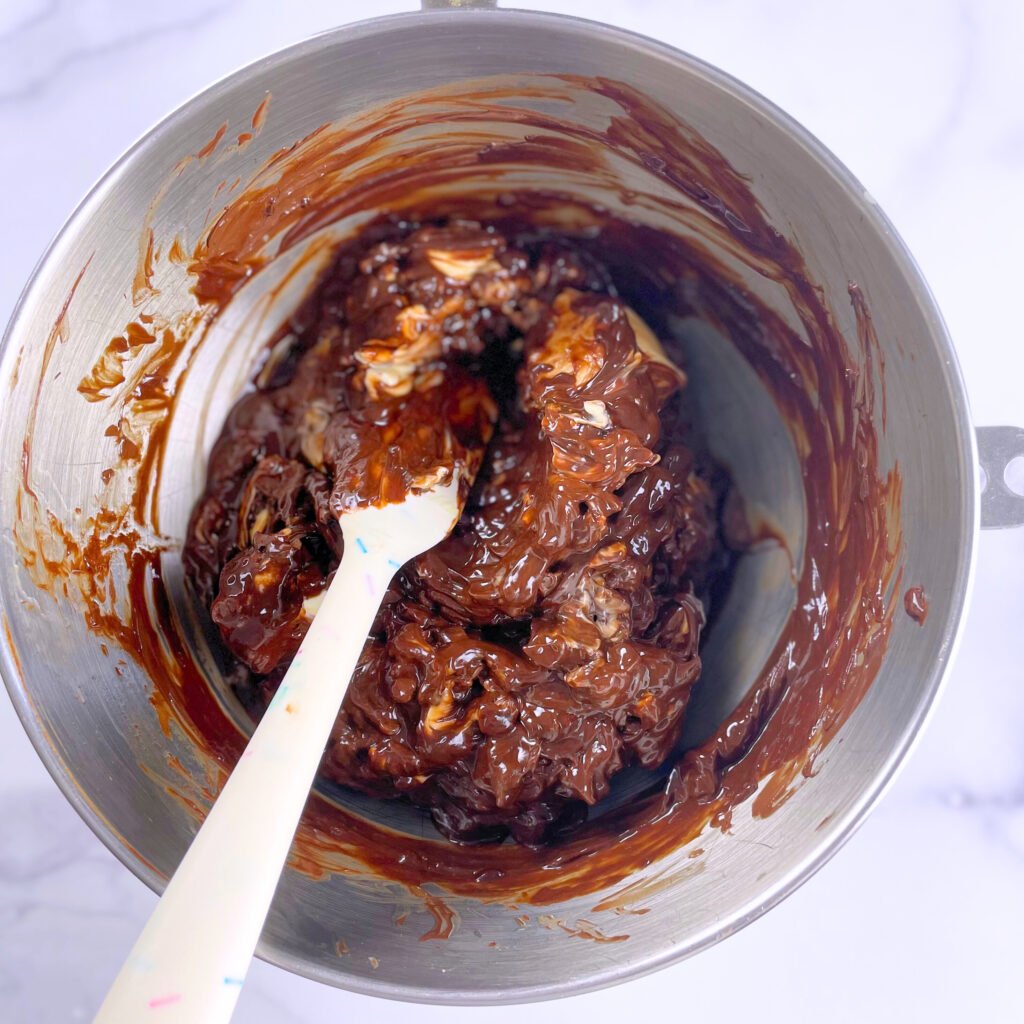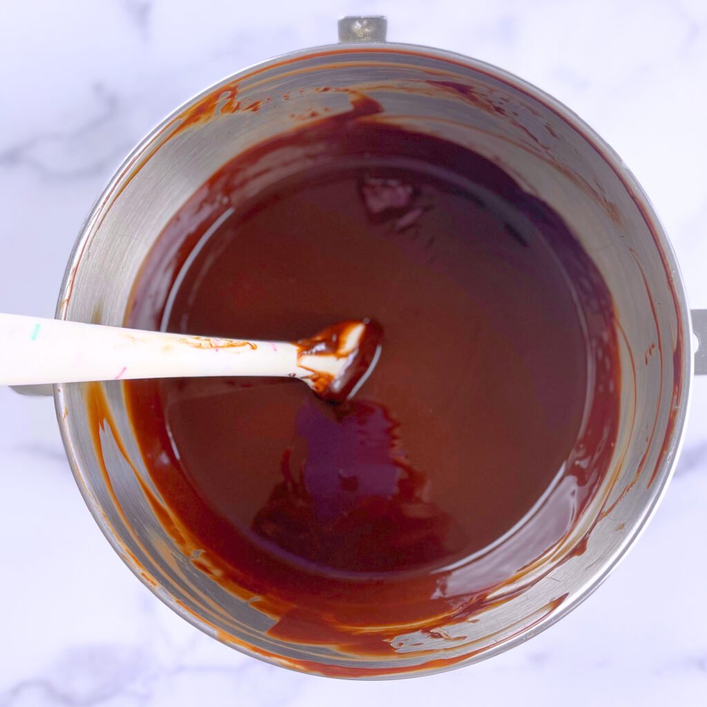 - Melt the chocolate and the vegan butter together until smooth, stirring occasionally.